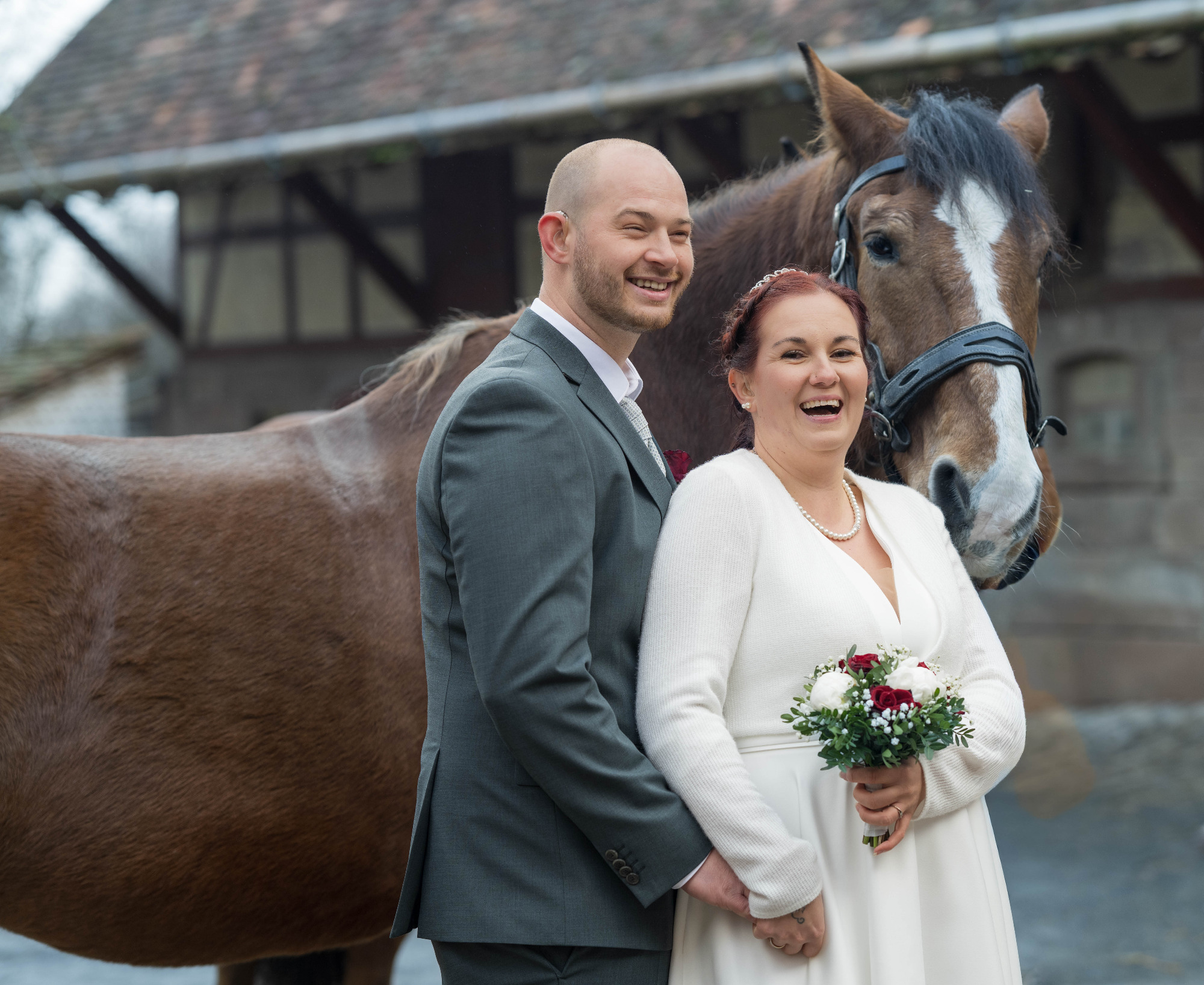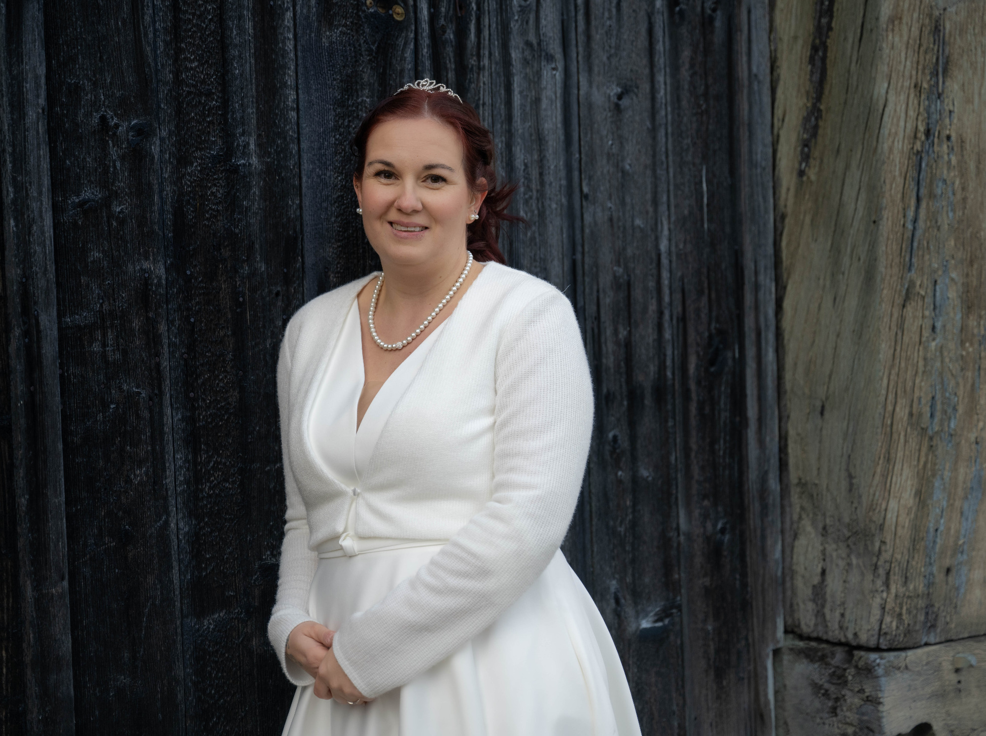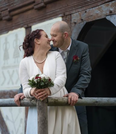 beispielsweise ein verkürztes Paarshooting am Hochzeitstag unter einem überdachten Bereich.